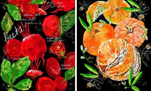 A curated collection highlighting floral and fruit motifs, are created digitally. They are available through